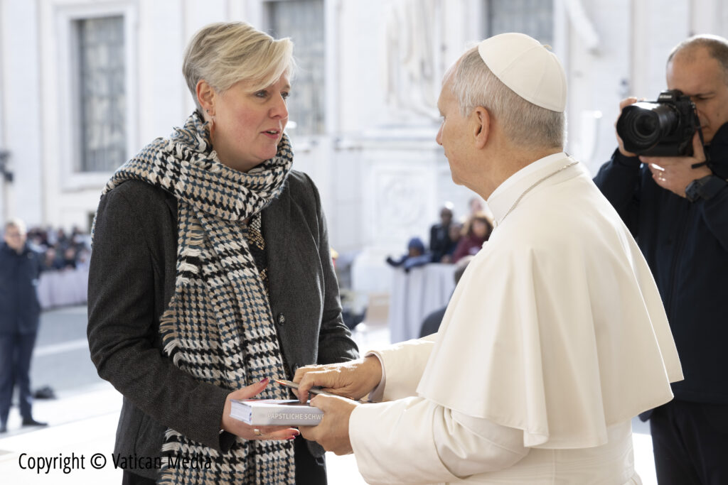 Am 31.12.25 durfte Jessica Krämer im Rahmen der Generalaudienz von Papst Leo XIV. ihren Bildband über die Päpstliche Schweizergarde präsentieren und übergeben.